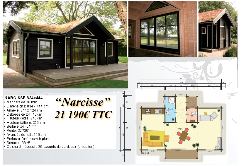 Pour consulter les caractéristiques et les prix des chalets, cliquez sur les images.